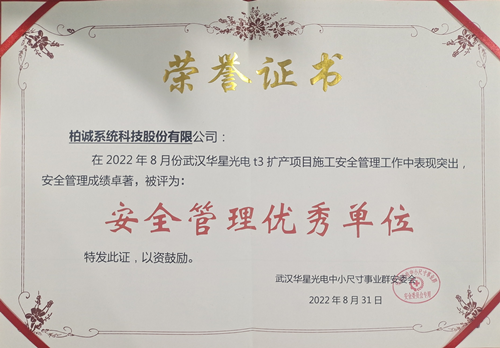 近日,BOTH武漢華星t5項(xiàng)目團(tuán)隊(duì)再次榮獲“安全管理優(yōu)秀單位”獎(jiǎng)項(xiàng),這是武漢華星t5項(xiàng)目團(tuán)隊(duì)連續(xù)3個(gè)月獲得此殊榮,項(xiàng)目安全員獲得“安全管理優(yōu)秀個(gè)人獎(jiǎng)”。
