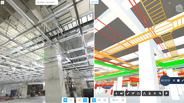 我們的BIM團(tuán)隊(duì)與項(xiàng)目團(tuán)隊(duì)緊密協(xié)作,將最新的BIM管理平臺(tái)應(yīng)用于項(xiàng)目實(shí)施。平臺(tái)集BIM、數(shù)字孿生與AI于一體,通過全景相機(jī)與BIM技術(shù)生成項(xiàng)目數(shù)字孿生空間,讓項(xiàng)目團(tuán)隊(duì)能直觀感受設(shè)計(jì)方案效果,實(shí)現(xiàn)設(shè)計(jì)與施工的無縫銜接;借助分屏展示不同時(shí)間點(diǎn)畫面的功能,可實(shí)時(shí)驗(yàn)證施工效果并進(jìn)行時(shí)間跨度比對(duì),從而實(shí)現(xiàn)項(xiàng)目進(jìn)度、質(zhì)量與安全的可溯可控