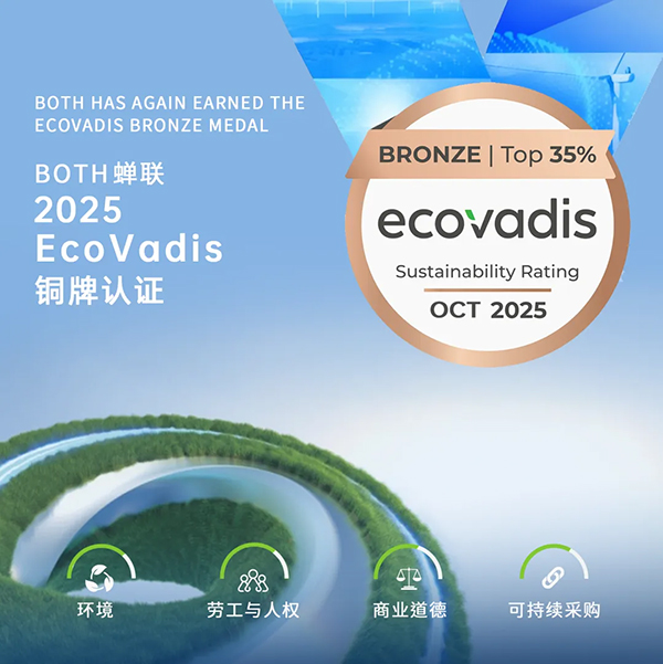“EcoVadis的認(rèn)證,既是對(duì)柏誠長期踐行企業(yè)社會(huì)責(zé)任的肯定,也是對(duì)未來持續(xù)進(jìn)步的激勵(lì)。”未來,BOTH將繼續(xù)推動(dòng)ESG理念與業(yè)務(wù)深度融合,攜手與客戶、合作伙伴及利益相關(guān)方,共同塑造可持續(xù)發(fā)展的未來。