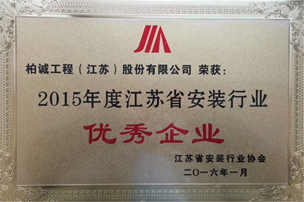 近日,公司榮獲江蘇省安裝行業(yè)協(xié)會頒發(fā)2015年度“江蘇省安裝行業(yè)優(yōu)秀企業(yè)”獎(jiǎng)。